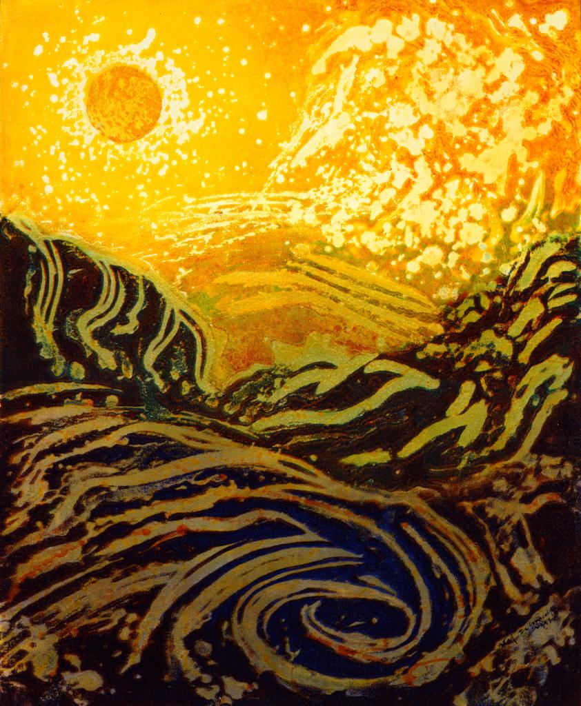 Alles om hem heen verwaterde. Voorbijgangers, kerken, paleizen, de stegen, de stad werd doorschijnend, weerspiegeld in de kanalen, levendig, fris, kleurrijk. De feestgangers ontstegen hun fysieke, materiële aard, de felle kleur van pigmenten gemengd met water en licht uit de lagune, transparant geworden als in een fresco, trokken in drommen, processiegewijs aan zijn tranend ooglid voorbij, dat zich gelijk een luik tegen de overbelichting, langzaam dichttrok. Het was alsof hij in een schilderij van de meester was binnen gestapt. Hij was weer thuis.